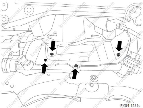 2. Викрутіть чотири болта кріплення теплозахисного екрана кермового механізму та зніміть теплозахисний екран.