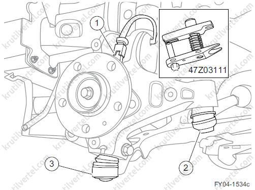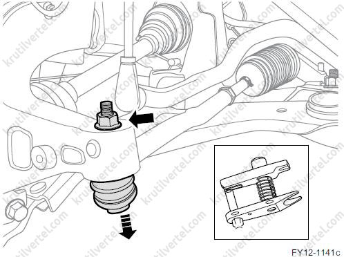 Порядок зняття лівого та правого нижніх важелів підвіски є однаковим.
