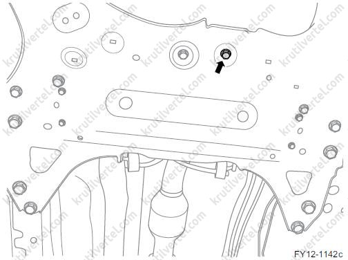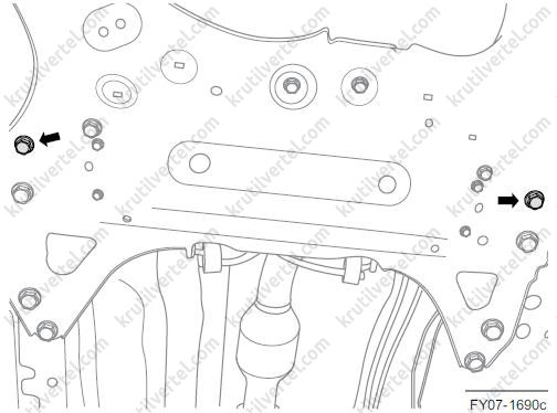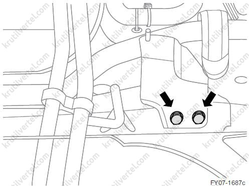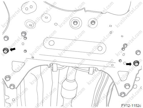 18. Викрутіть два болта, що з'єднують задню частину підрамника з кузовом.