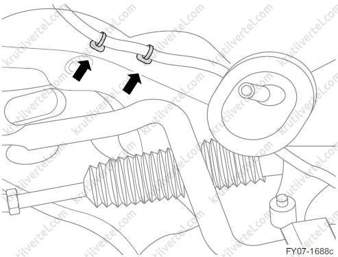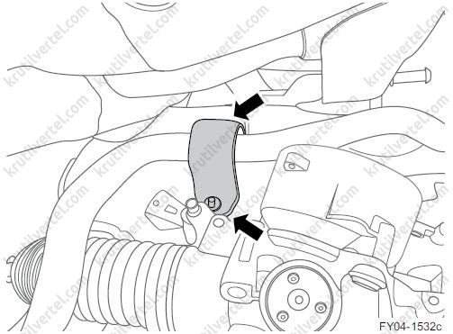 21. Викрутіть два болти хомута переднього стабілізатора з кожного боку і зніміть стабілізатор у зборі.