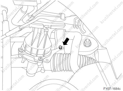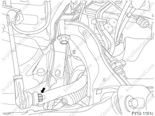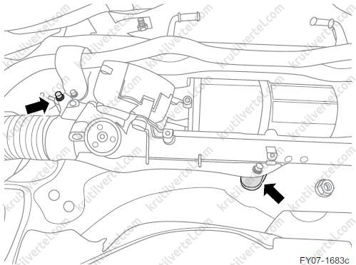 4. Затягніть два болти, що з'єднують кермовий механізм і ліву сторону переднього підрамника.