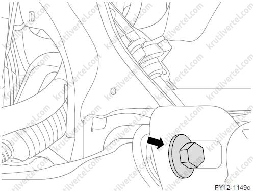 8. Викрутіть болт, що з'єднує передній підрамник та задній опорний кронштейн.