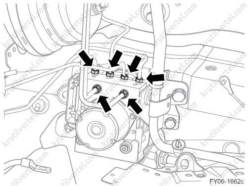 Між електронно-гідравлічним блоком керування та монтажним кронштейном встановлений гумовий віброізолятор, який запобігає передачі вібрацій від кузова автомобіля на електронно-гідравлічний блок керування. Електронно-гідравлічний блок керування не підлягає ремонту та замінюється лише у зборі.