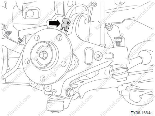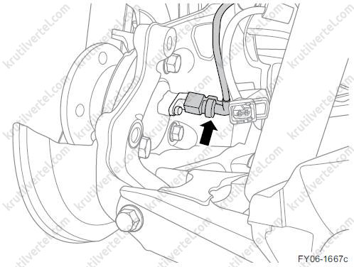 Датчик швидкості колеса є датчиком Холла При обертанні колеса блок керування ABS використовує сигнали частоти обертання кожного колеса для розрахунку їхньої окружної швидкості можна замінити окремо.