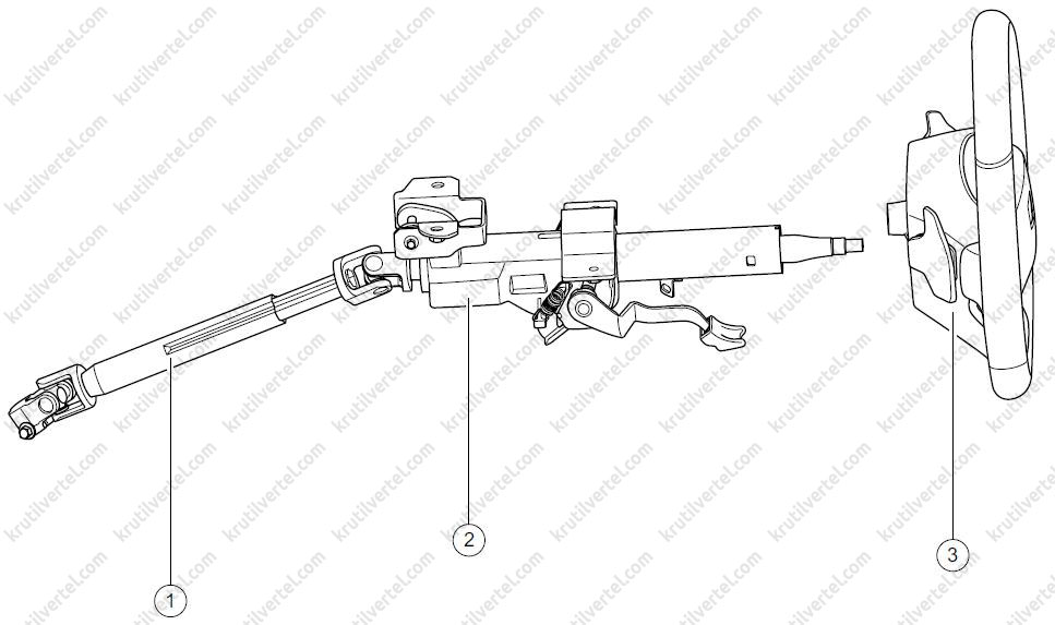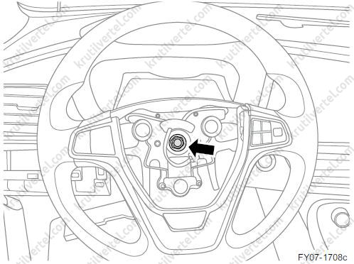 - Після від'єднання проміжного валу рульової колонки не повертайте кермо та передні колеса автомобіля. В іншому випадку деякі деталі під час встановлення будуть відрегульовані неправильно, що може призвести до виведення автомобіля або пошкодження спірального дроту внаслідок його зміщення від центрального положення.