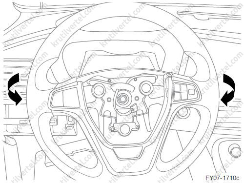 - рульова колонка регулюється по висоті та куту нахилу; при регулюванні положення рульового колеса не прикладайте надмірних зусиль, щоб не пошкодити енергопоглинаючий механізм.
