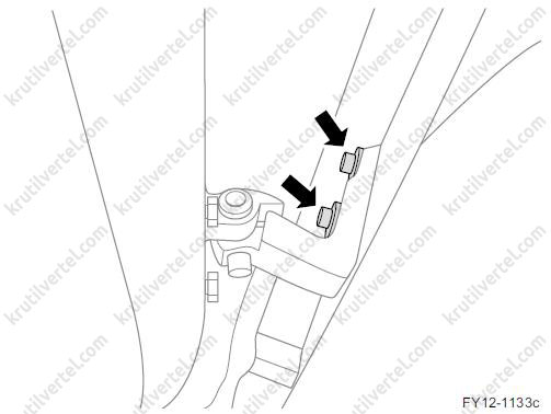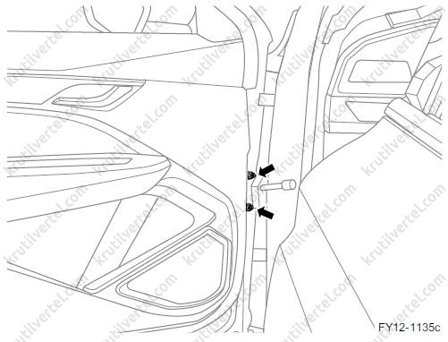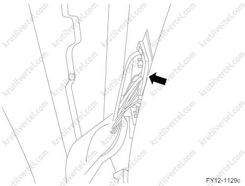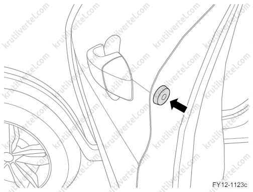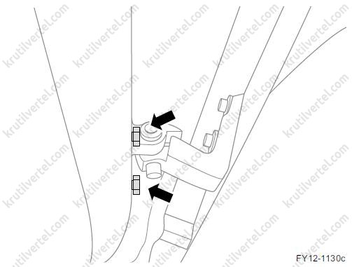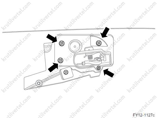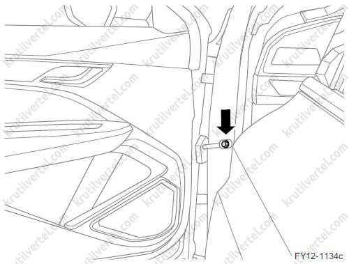 3. Підсуньте гумову кришку болтового отвору з боку передніх дверей та послабте кріпильний болт циліндра замка.