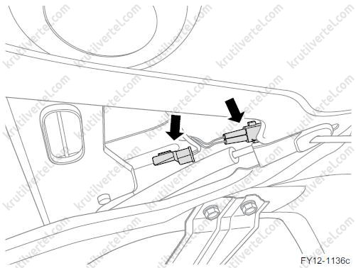 - Живлення, «маса» та шина передачі даних головного блоку аудіосистеми (експортна модель)