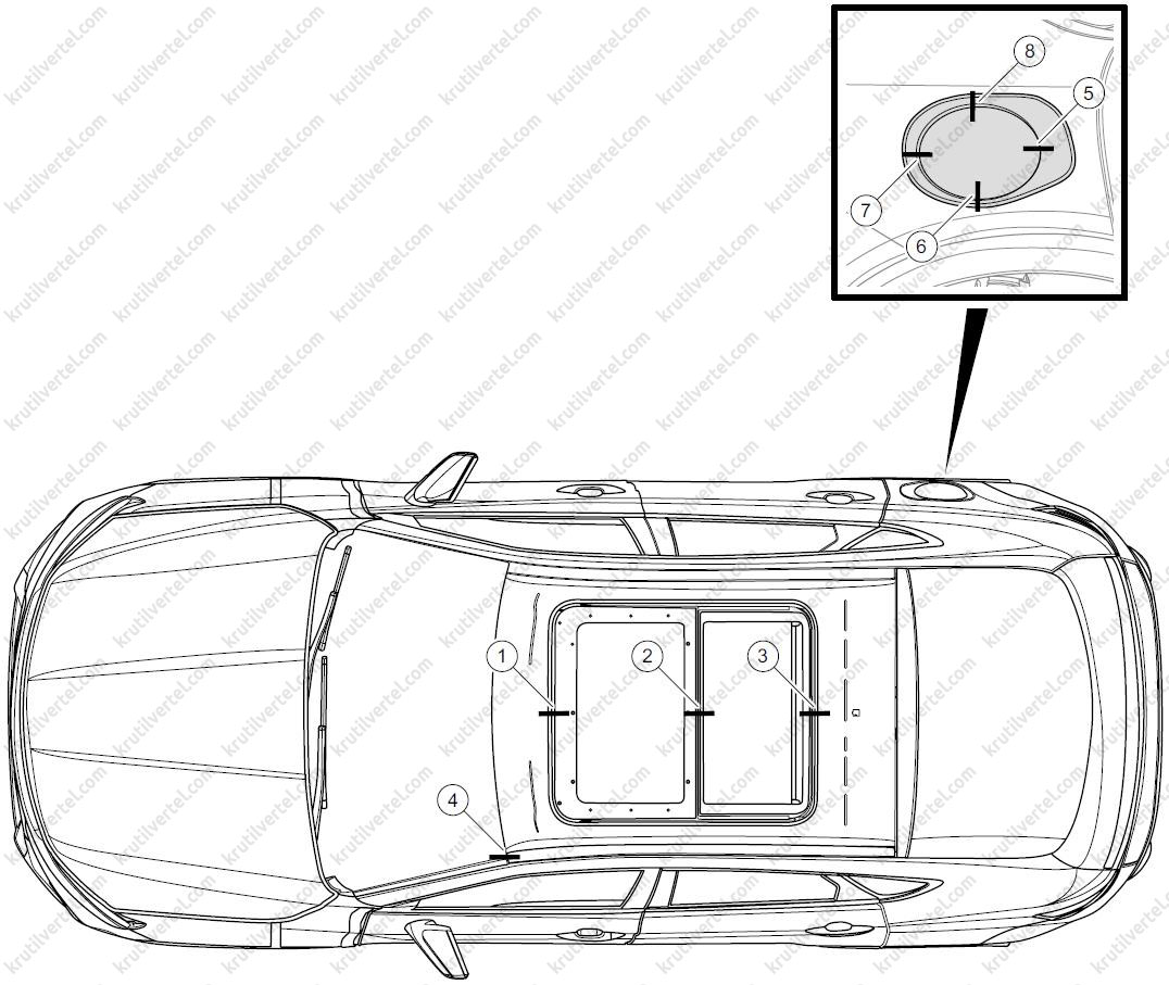 | 8 | Дах | Двері багажного відділення | 6 ± 1,2 | -1,0 ± 1,2 | 1,2 | / | / |