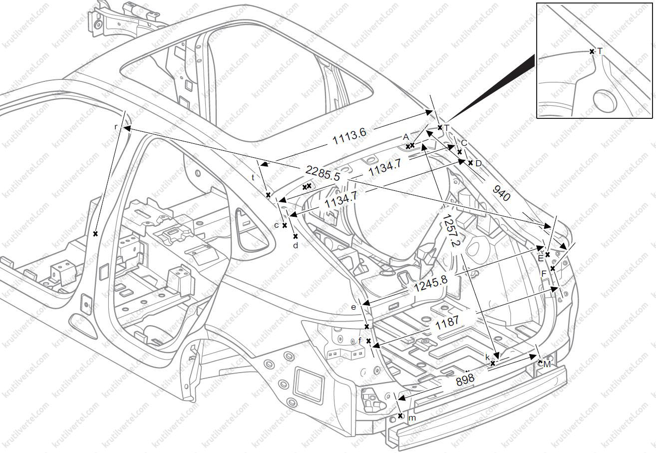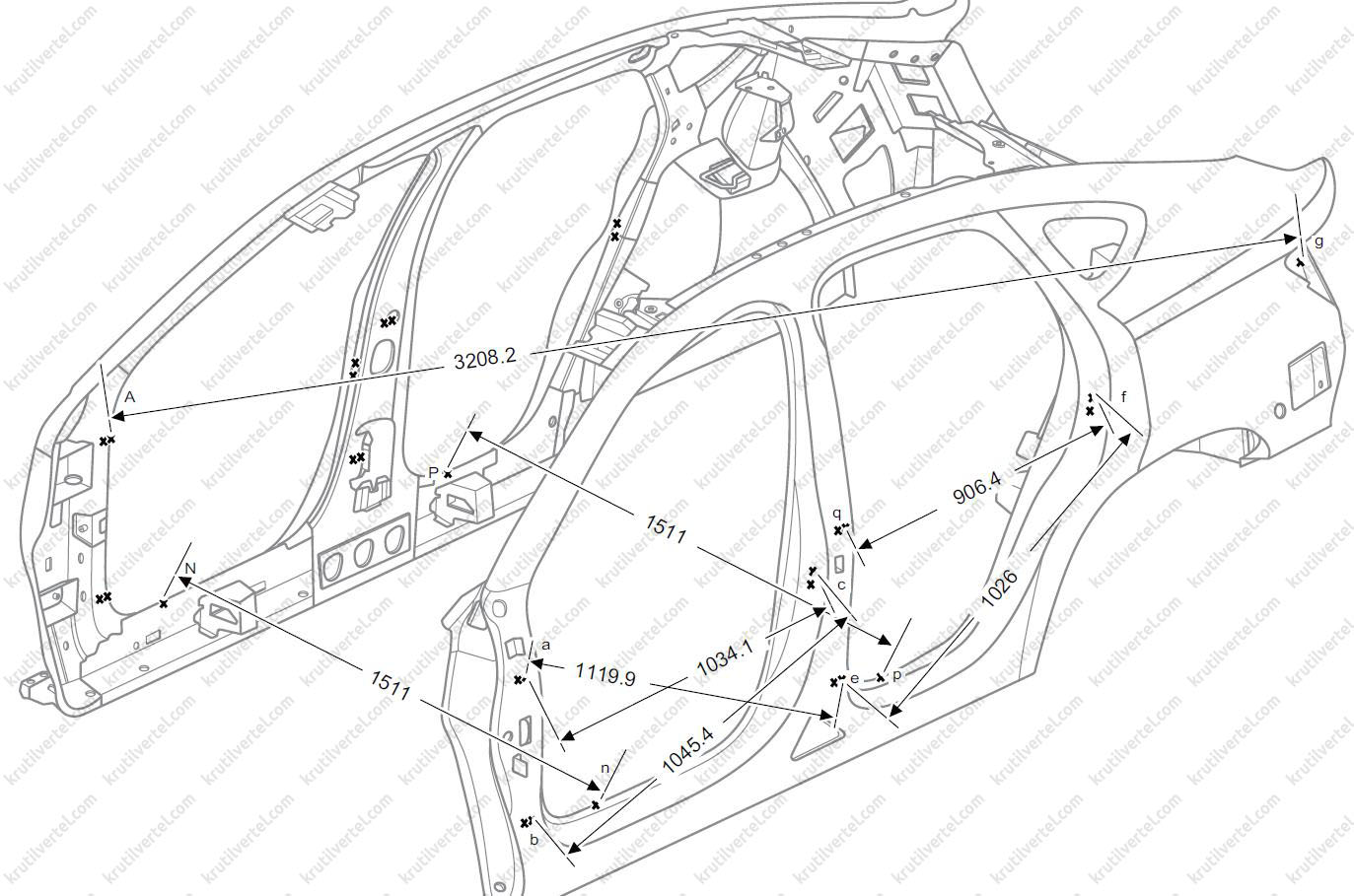 | 29 | Бічна стінка | Двері багажного відділення (X) | 3,5±1,0 | -1±1 | 1,0 | 1,0 | / |
