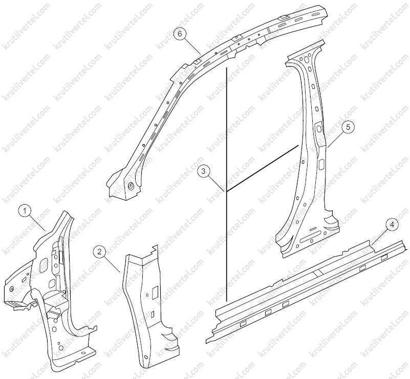 | 6 | Лицьова панель середньої стійки передніх дверей | Лицьова панель середньої стійки задніх дверей | 4,0±1,0 | 0 ± 1,0 | 1,0 | / | 0 ± 1,0 |