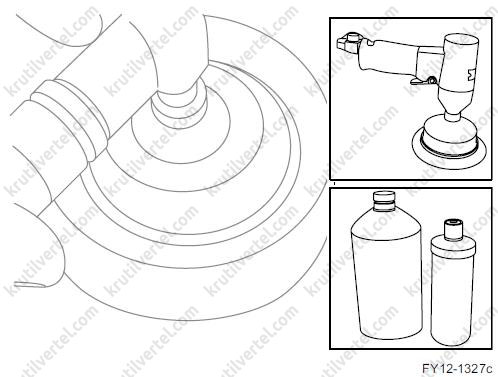 Підтримуйте рівномірне обертання шпинделя полірувальної машини. Дійте обережно. Уникайте надмірного шліфування. Максимально зменшіть час шліфування (до 3 – 5 секунд). Площа оброблюваної ділянки має бути якнайменше.