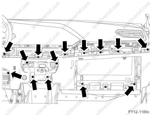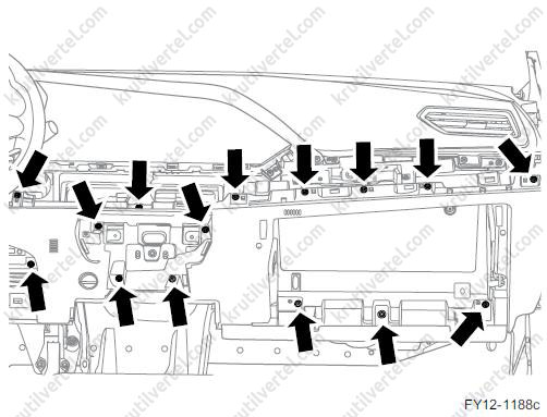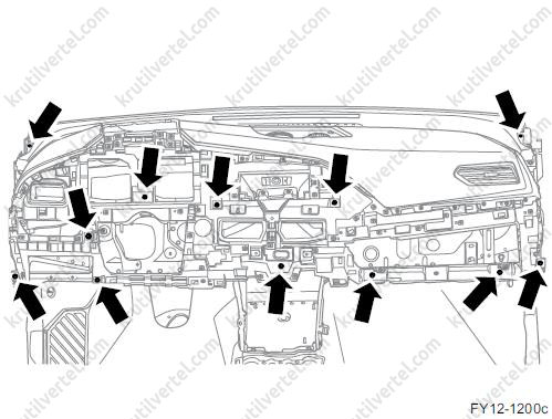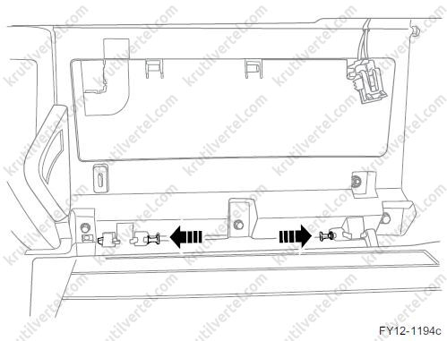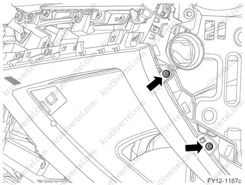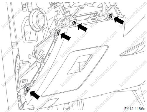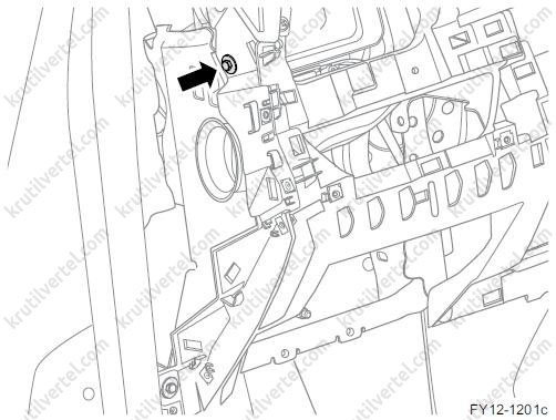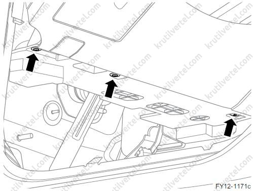 Відверніть три засувки панелі приладів нижньої лівої захисної пластини панелі приладів і від'єднайте ліву нижню перегородку приладової панелі в зборі.