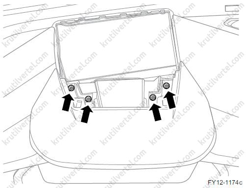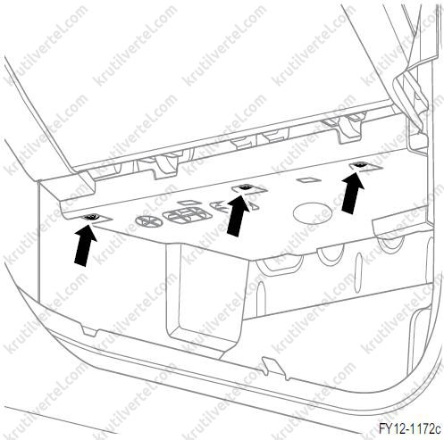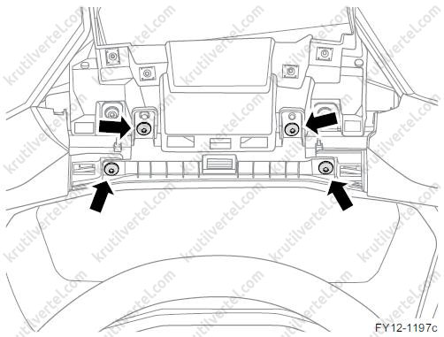 Відверніть три засувки панелі приладів нижньої правої захисної пластини приладової панелі та від'єднайте нижню праву перегородку приладової панелі в зборі.