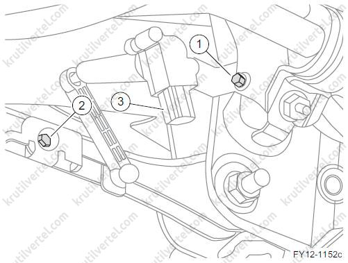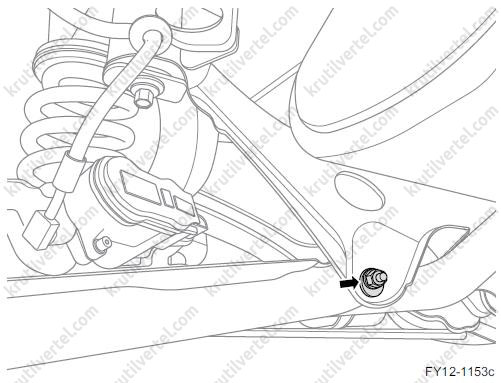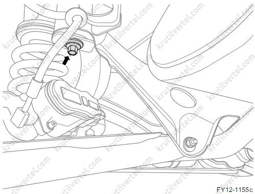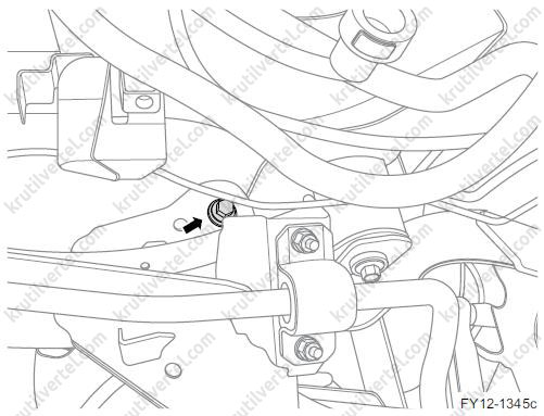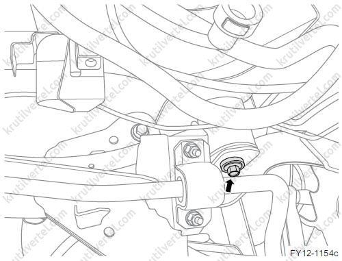 2. Відкрутіть одну гайку кріплення гасника резонансних коливань до переднього підрамника.