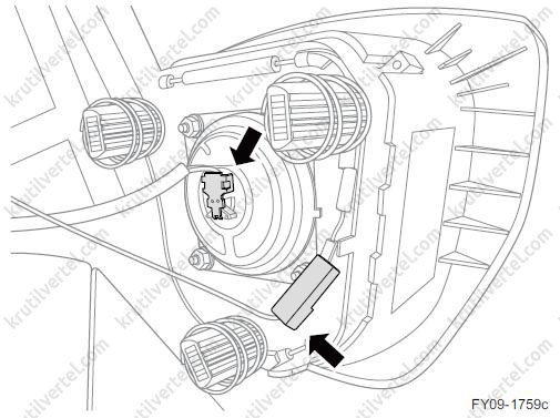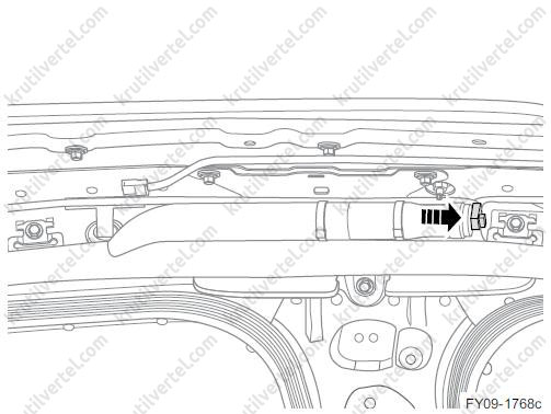 - Перед зняттям комбінованого перемикача та кермової колонки внутрішнє кільце спірального кабелю слід закріпити хомутом, щоб уникнути його повороту після зняття.