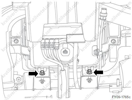 - Живлення, «маса» та шина передачі даних головного блоку аудіосистеми (експортна модель)