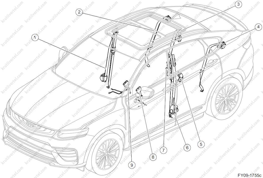 ремінь безпеки Geely, подушка безпеки Geely, моменти затягування Geely, ремінь безпеки Geely Tugella, подушка безпеки Geely Tugella, моменти затягування Geely Tugella