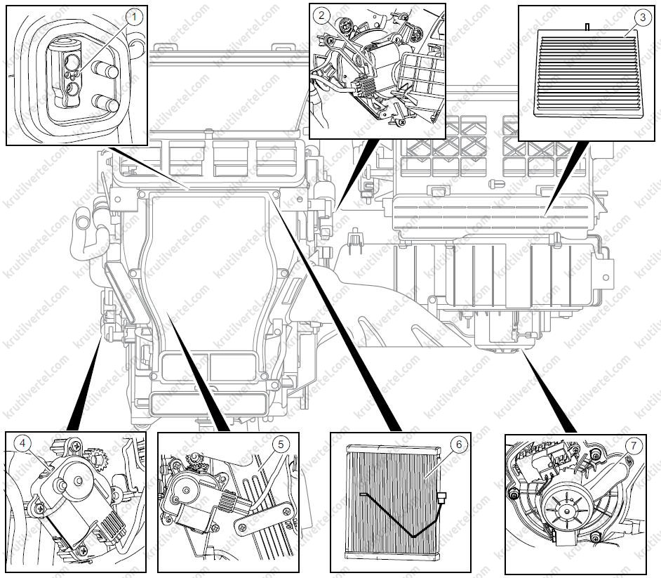 Конструкція автоматичної системи кондиціонера призначена для створення комфорту в салоні автомобіля, незалежно від погодних умов зовні автомобіля. Система головним чином складається з наступних компонентів: