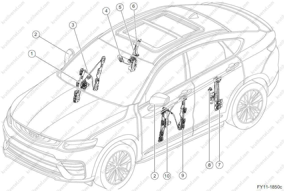 Вікна, скло та дзеркала заднього виду Geely Xingyue / Tugella з 2019 року випуску (+ рестайлінг 2022)