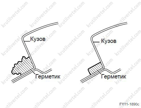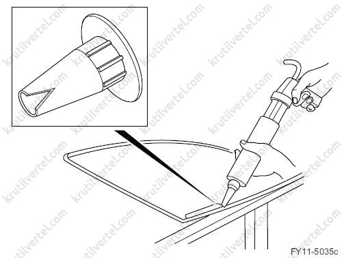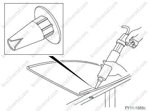 8. Після затвердіння клею розпорошіть воду на автомобіль зовні. Перевірте, чи вода не потрапляє всередину салону. При проникненні води в салон нанесіть повторно клей після того, як вода висохне.