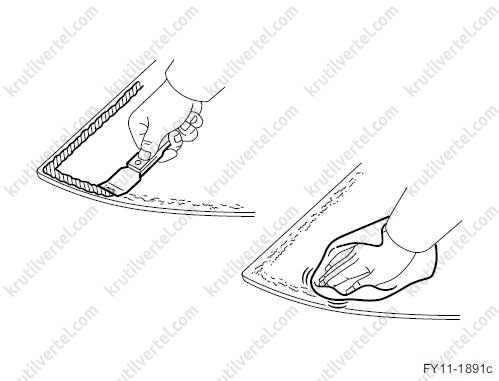 13. За допомогою леза видаліть надлишок клею з контактної поверхні кузова.