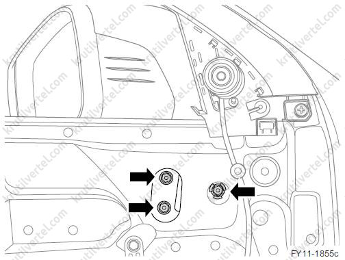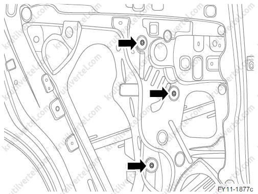 7. Відкрутіть три кріпильні гайки склопідйомника задніх дверей.