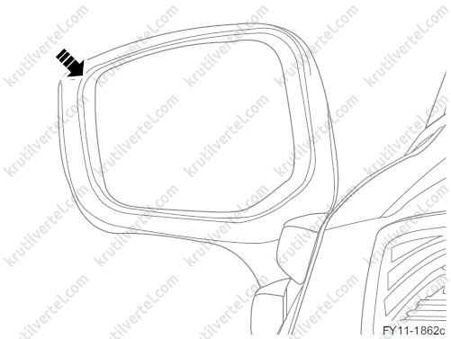 3. За допомогою шліцевої викрутки підтягніть корпус дзеркала заднього виду в напрямку, показаному на малюнку, і зніміть скло зовнішнього дзеркала заднього виду.