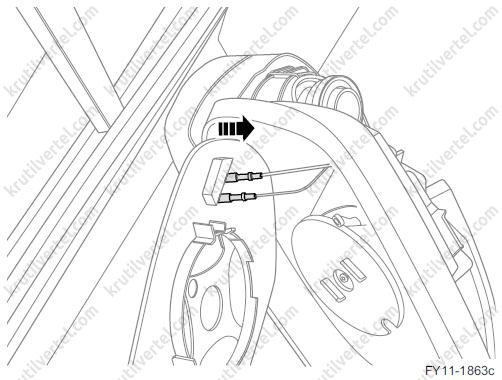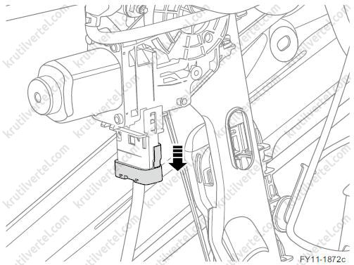 5. Від'єднайте роз'єм джгута проводів перемикача передніх дверей і зніміть панель перемикача передніх дверей.