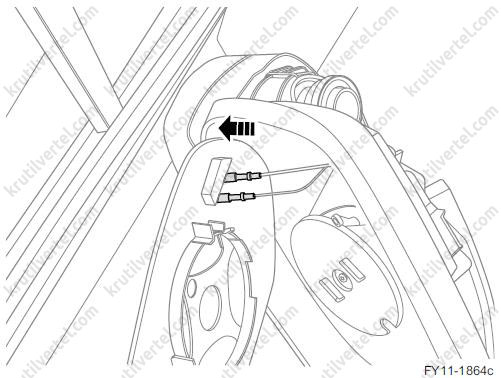 6. Від'єднайте роз'єм джгута проводів електродвигуна регулювання дзеркала заднього виду та зніміть електродвигун регулювання електричного дзеркала заднього виду.