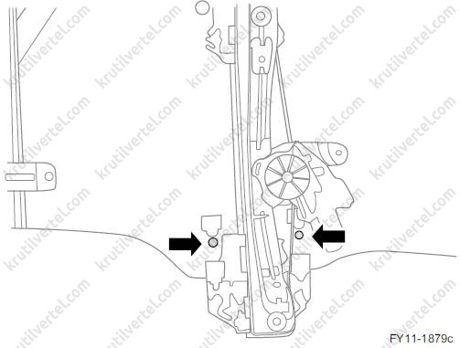 9. Зніміть склопідйомник передніх лівих дверей у зборі.