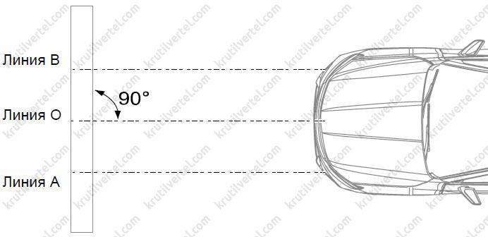 - Лінія O (суцільна жирна лінія): намалюйте вертикальну лінію, вирівняну з центром автомобіля, у центрі тестового екрану.