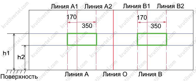 - Лінія А (суцільна тонка лінія): намалюйте лінію, паралельну лінії O, ліворуч на відстані 713,5 мм від лінії O.