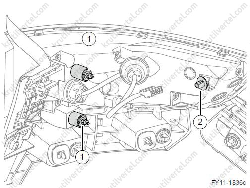 Принцип роботи фар: При переведенні комбінованого перемикача освітлення в положення фар («Headlight») роз'єм джгута проводів комбінованого перемикача створює робочу напругу, що замикає реле фар, після чого включаються фари. Напруга живлення фар подається на перемикач регулювання оптичної осі фар, а також електродвигуни регулювання оптичних осей лівої та правої фар. При повороті перемикача регулювання вгору та вниз змінюється сигнальна напруга на електродвигуні регулювання, що забезпечує регулювання напрямку висоти фари.