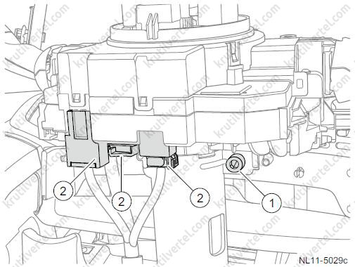 2. Підключіть роз'єм (2) джгута проводів комбінованого перемикача (див. малюнок вище).