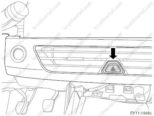 7. Від'єднайте вимикач світлової аварійної сигналізації від правої декоративної накладки приладової панелі.