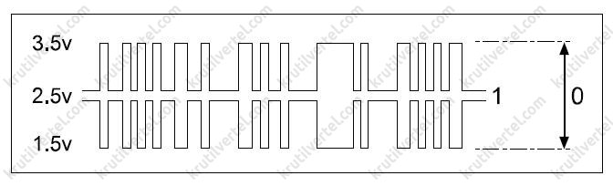 Високошвидкісна шина CAN є диференціальною шиною. Високошвидкісні шини CAN послідовної передачі даних (H) і (L) приводяться в дію різницею напруг від мінімального рівня до максимального. підвищується на 1, а в шині послідовної передачі (L) знижується на 1 В. Максимальна різниця напруг 2 В вважається як пряма передача даних і визначається як логічний стан 0 (як показано на малюнку нижче).