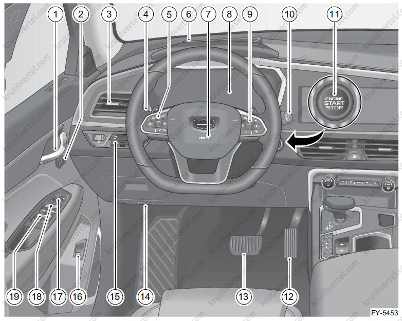 Приладова панель, органи управління та обладнання салону Geely Xingyue / Tugella з 2019 року випуску (+ рестайлінг 2022)