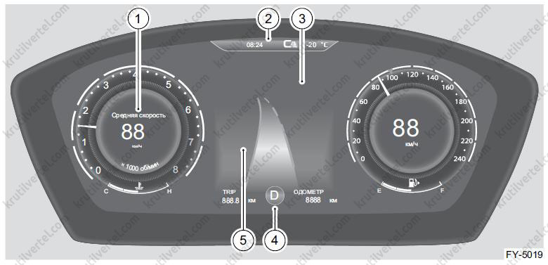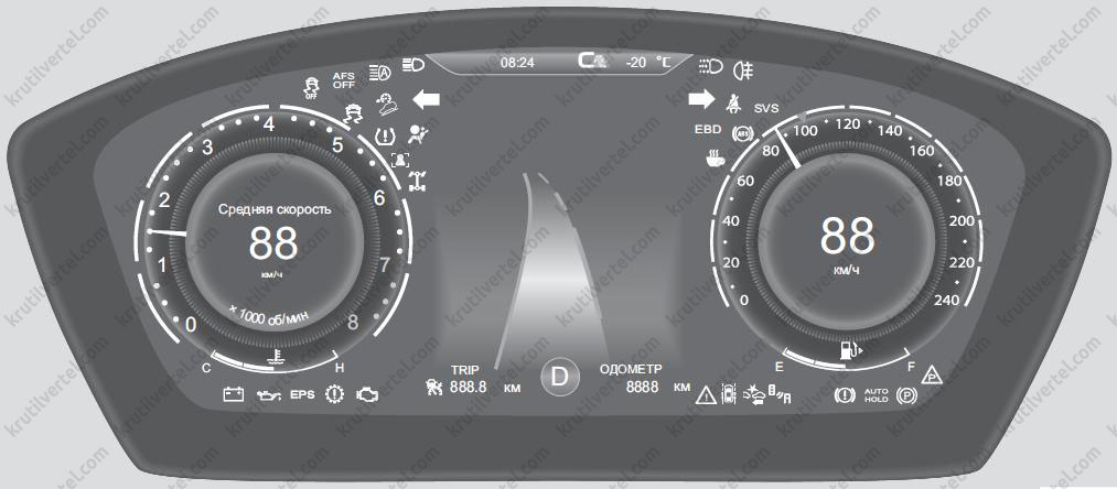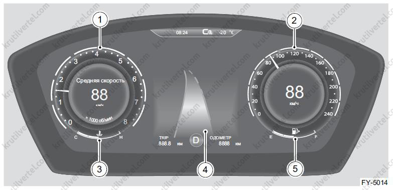 - Комбінація приладів має різноманітні стилі відображення. Ви можете вибрати кращий стиль відображення в налаштуваннях мультимедійної системи або увімкнути синхронізацію з режимом руху.