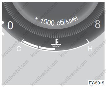 Верхня межа температури охолоджувальної рідини двигуна позначена символом «Н», а нижня – символом «С».
