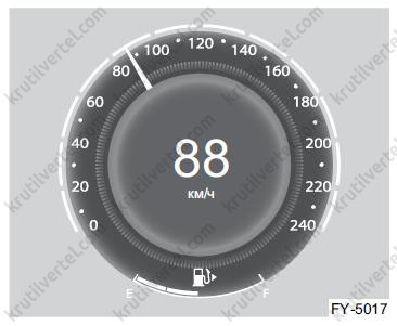 Спідометр показує поточну швидкість автомобіля в км/год із максимальним значенням шкали 240 км/год.