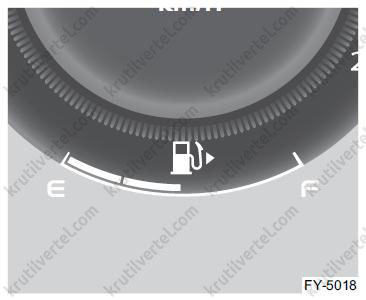 Коли вимикач запалення знаходиться в положенні ON, покажчик рівня палива показує приблизну кількість палива, що залишилося в паливному баку.