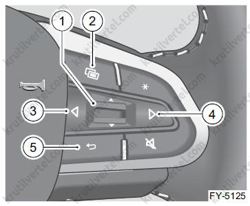 Натисніть кнопку перемикання режимів, щоб переключити керування за допомогою кнопок на рульовому колесі між головним пристроєм мультимедійної системи та комбінацією приладів.