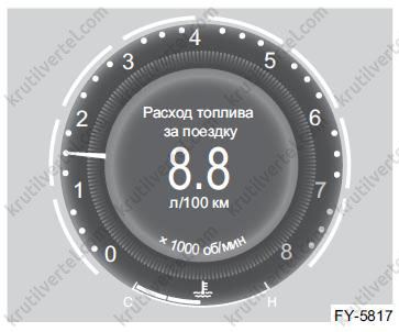 Відображаються проміжний пробіг, середня витрата палива, витрата палива за поїздку*, миттєва витрата палива, запас ходу, пробіг за поїздку, час у дорозі, середня швидкість, тиск у шинах та рівень моторного масла.