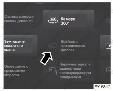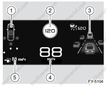 Відображаються попереджувальні піктограми, повідомлення допоміжних функцій (у т. ч. попередження про виїзд зі смуги руху, попередження системи запобігання зіткненням) та налаштування меню.