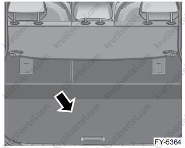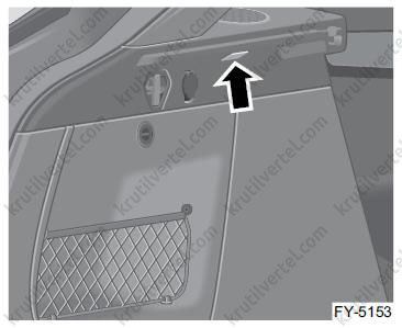 Речове відділення з правого боку багажного відсіку закрито кришкою. Потягніть стрічку вгору, щоб відкрити кришку та скористатися цим відділенням.