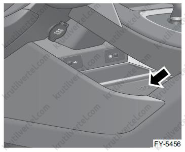 Автомобіль обладнано функцією бездротової зарядки. Модуль бездротової зарядки розташований у нижній частині центральної консолі. У разі використання цієї функції переконайтеся, що котушка телефону поєднана з котушкою в центрі зарядної панелі, коли пусковий перемикач встановлено в режим ACC/ON. Оскільки розташування котушки мобільного телефону залежить від моделі телефону, може знадобитися налаштувати положення мобільного телефону на зарядній панелі.