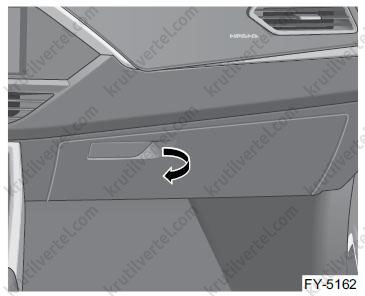 Ящик коробки розташований на приладовій панелі з боку переднього пасажира. Щоб відкрити ящик рукавички, потягніть ручку вліво. Щоб закрити ящик для рукавичок, натисніть на його кришку.
