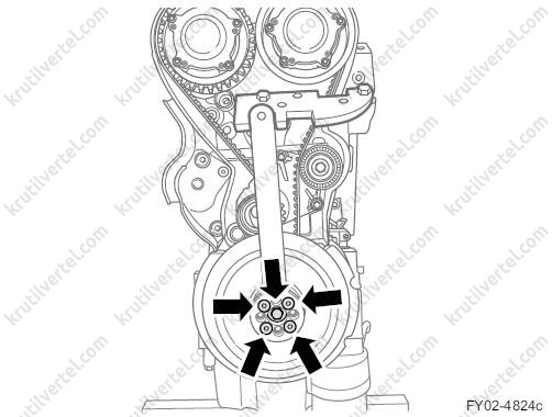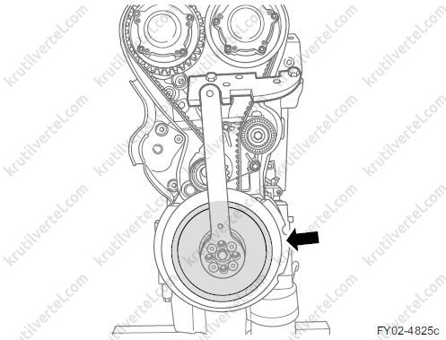 3. За допомогою спеціального пристрою зафіксуйте провідний диск, щоб запобігти обертанню колінчастого валу.