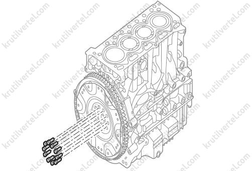 Відвертайте болти проти годинникової стрілки (при погляді з переднього боку двигуна).